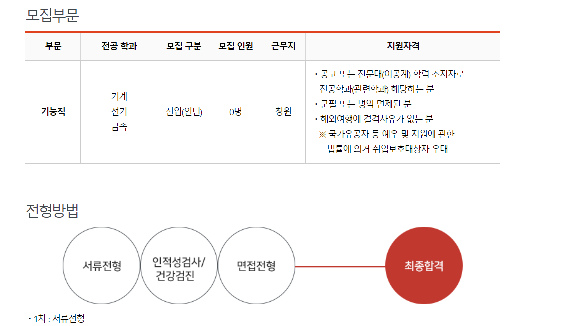 기계과 전기과 금속과 졸업자로 인턴기간동안 최종 부서배치가 정해진다고 합니다.