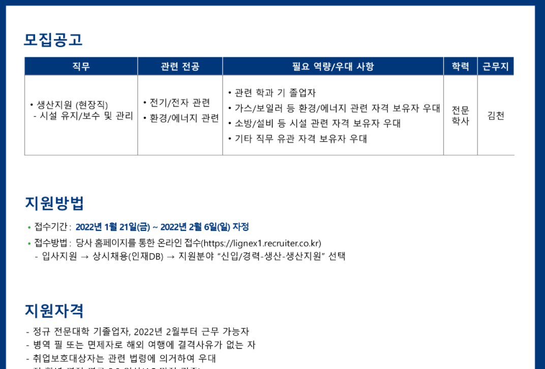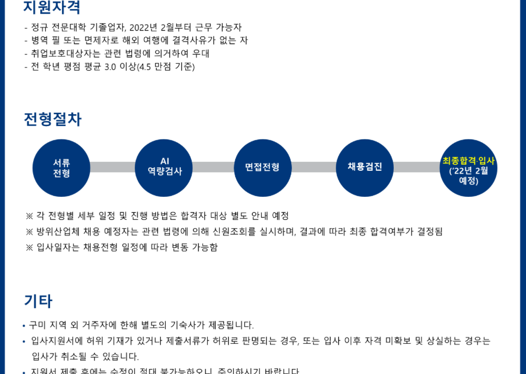 이번 공고는 아쉽게도 전문대졸 분들만 지원할 수 있겠네요.