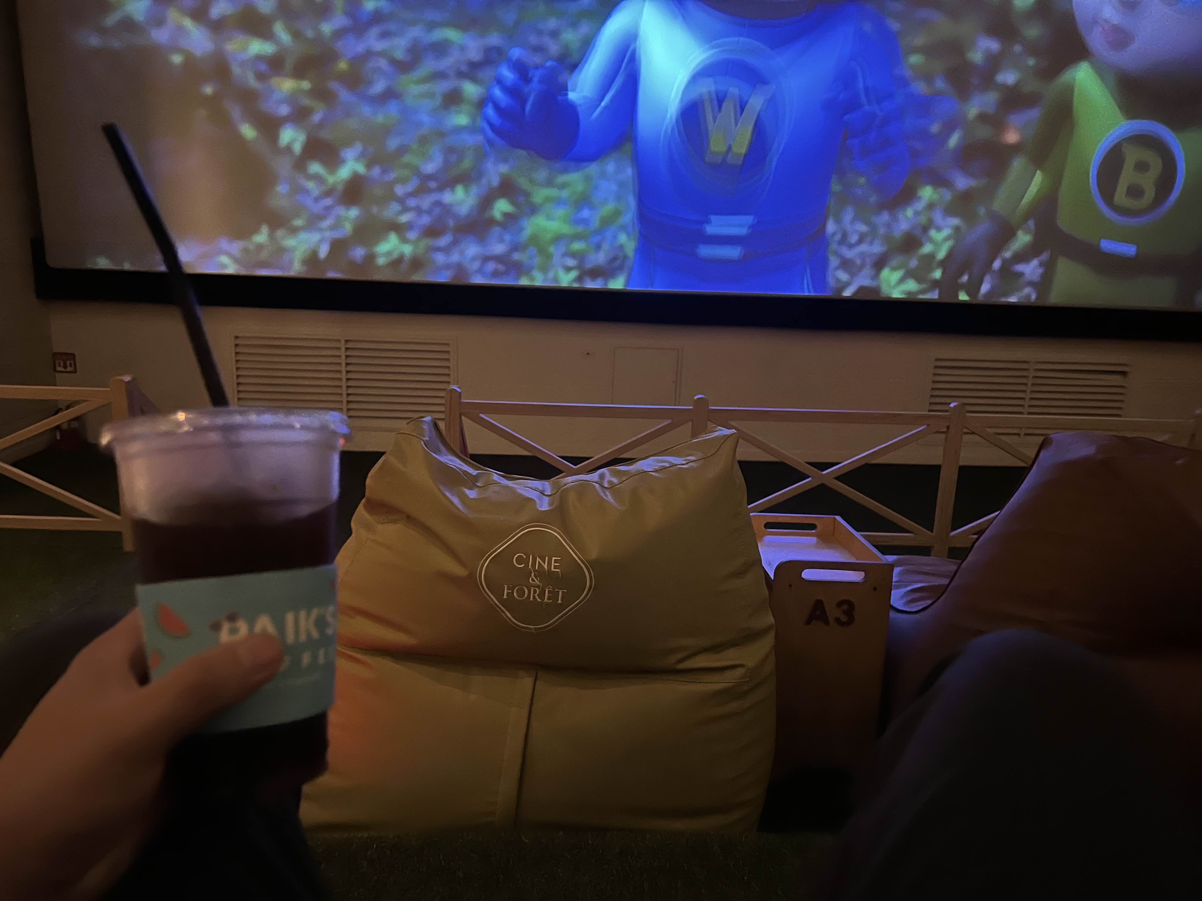 동수원 cgv 씨네포레관에서 관람하였는데, 의자가 누워서 봐도 되게끔 되어있어서 정말 편했다.